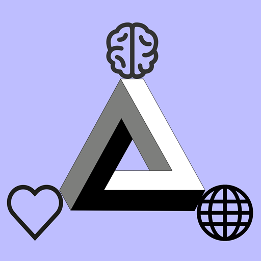 Het logo van deze site weerspiegelt de complexe relatie tussen wat we denken en zeggen, wat we daarbij ervaren, en hoe we ons uiteindelijk gedragen in de wereld om ons heen.